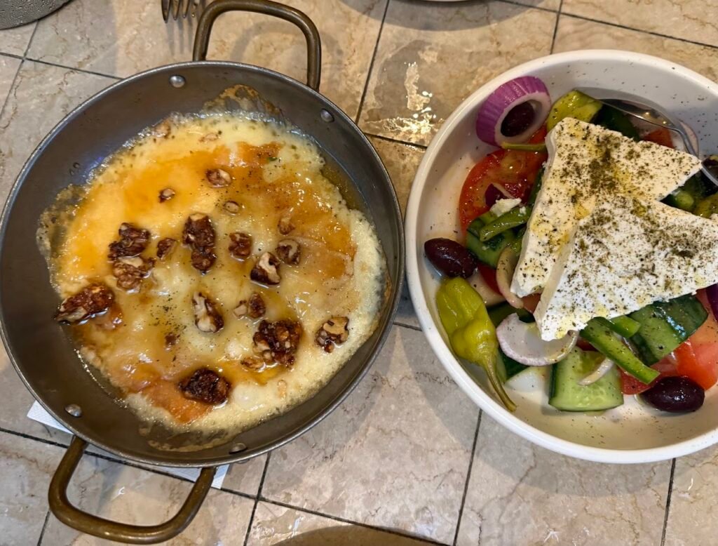 Outside, we find a generous deck. It is dog friendly, naturally, because Greeks love family and dogs are family with its own bar and a front-row seat to what is sizzling nearby. Fair warning: your dog will develop strong opinions about this place and will not stop staring at you until you bring them back. We saw this evidence on BOTH visits.