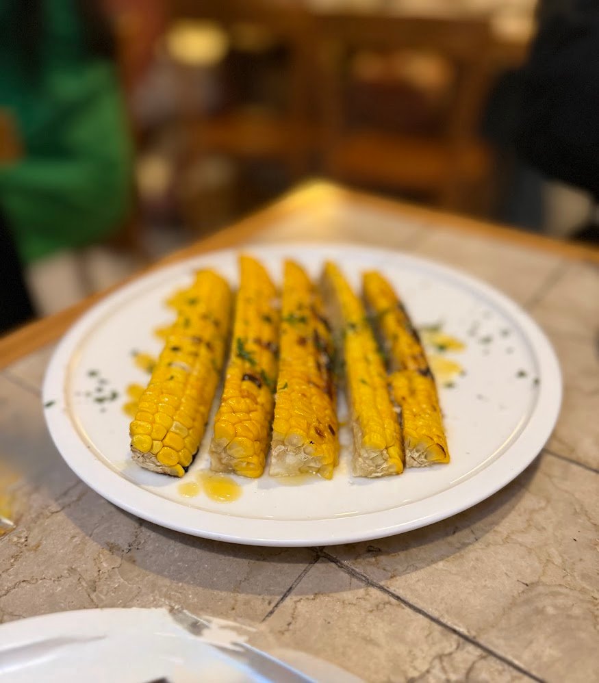 The calamari lands with attitude: crispy, heavily seasoned, with lemon underneath. And then, completely without warning, the sweetcorn arrives ($14). Long charred quarters, basted in butter, glossed with honey. Fabulous. A welcome departure from the Mexican-style versions that arrive buried under an avalanche of cheese and toppings. This one lets the corn be the corn.
