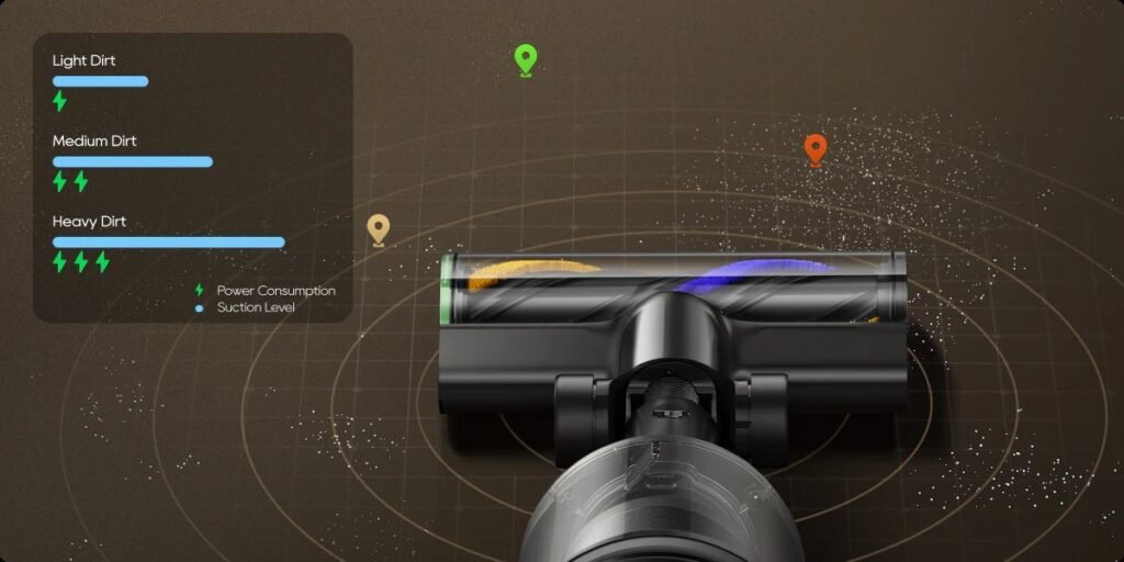Filtration is genuinely impressive too. A 5-layer system with HEPA H14 at 99.99% efficiency down to 0.1µm. For anyone with allergies, or who simply doesn’t want to redistribute dust back into the air, this matters.