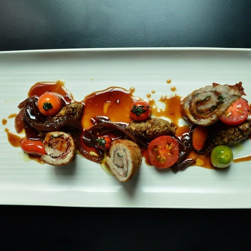 John’s love of Italian is like a hug from a supermodel, exciting, recognisable, but at the same time has a rock star quality. Perfect antipasto plays companion to a Santa Margherita Prosecco; crostini topped with cherry tomatoes, calamari dancing on a doona of aioli and caramelised onions followed by more-ish polenta chips with gorgonzola sauce.