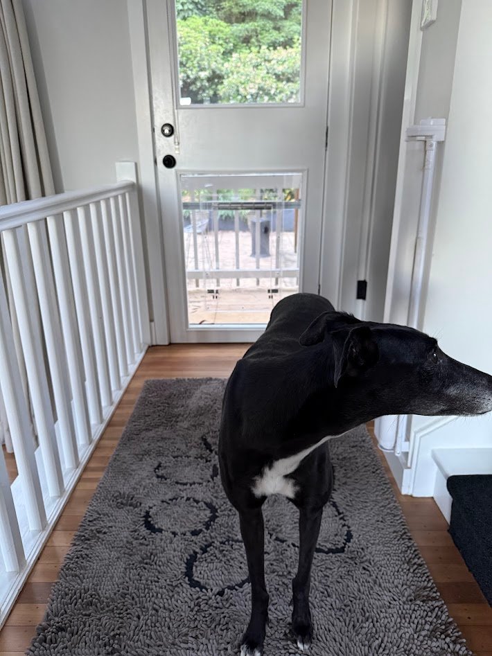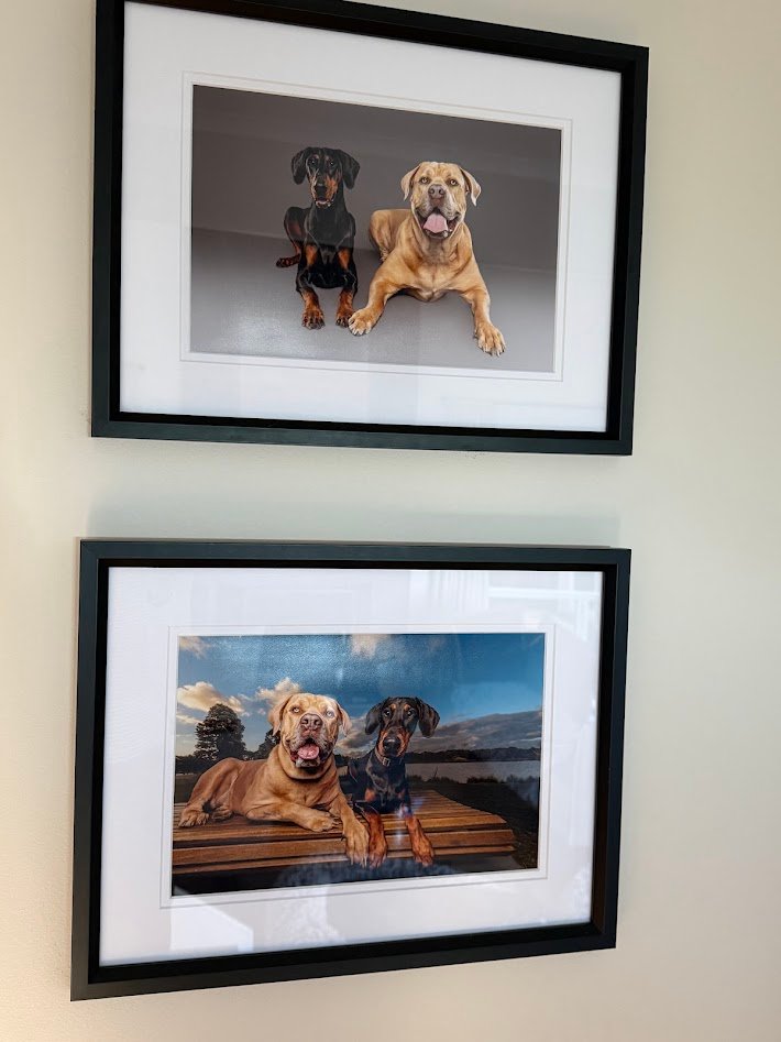 Two beanbag style Snooza beds are already set up for dogs to slepp on in a nook behind the sofas, (we brought our Snooza Cuddlers from home – clearly we are ‘on’ brand) . and there’s an electric piano! This soon becomes one of Maggie’s favourite spots to sleep on after dinner. Georgeous pictures of the owner’s rescue mastif ‘Hendrix’ and their doberman ‘Tasha’ adorn the walls in the lounge. I love this tell ‘tail’ sign of why this house is so pawesome for big dogs – it is a house owned by pet parents. You can tell the owners love their handsome pups as much as we do ours.