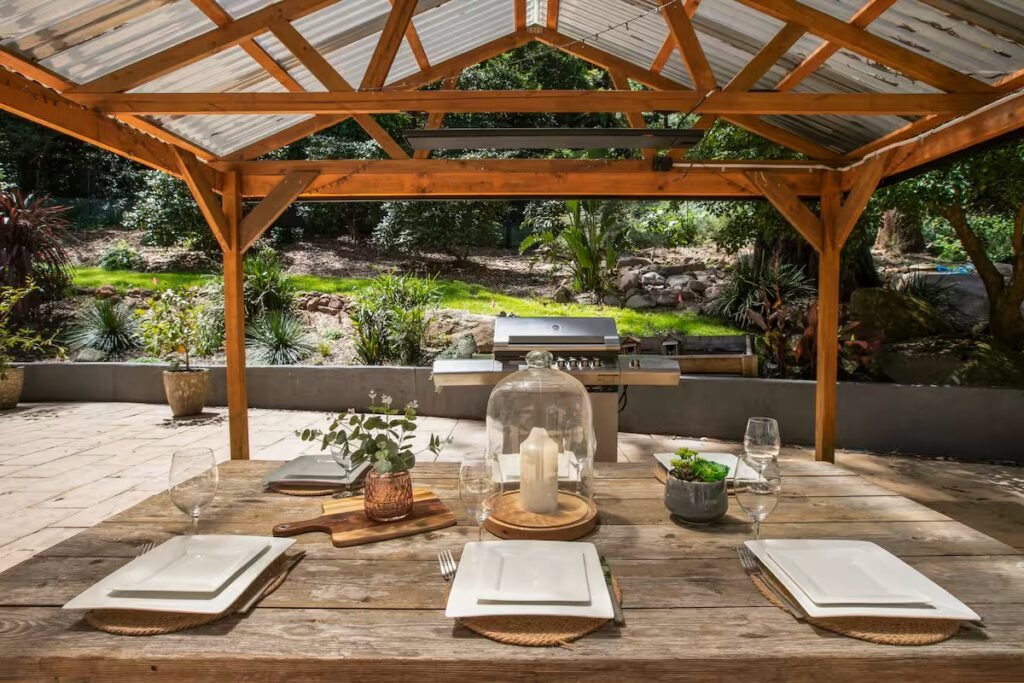There is a paved outdoor area at the back of the house, which can be accessed from the dog door or the rumpus/TV room. Given the wet weather, we don’t get to use the space which has a covered area for the BBQ and seating which also includes a fire pit and outdoor shower. There is also a mighty fine bonfire stack towards the back which would make Guy Fawkes jealous. Little touches like a dog watering station (with always on taps/water) fill my heart with happiness.