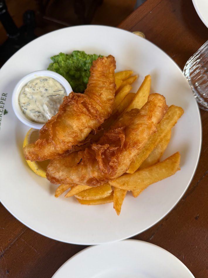 The chicken parmi arrives with a side salad and chips. The crumbed coating is a little soggy, but all the flavours are there. The winner by a long shot is the Fish n’ Chips. I hear they do roasts at the weekend and even have scampi on the menu (my favourite) but sadly not our visit.