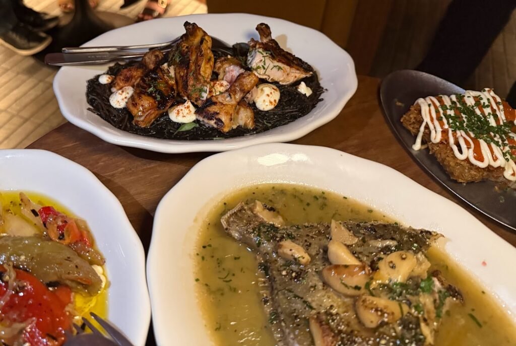 The grilled chicken with fideuà negra is one of the most inventive dishes on the menu.I haven’t seen anything like this. Instead of rice, short squid-ink egg noodles create an inky black bed across the plate. Perched ontop are joints of chargrilled chicken, the whole dish lifted with dots of creamy aioli. Smoky, savoury and deeply comforting. It’s their signature dish whether they know it or not.