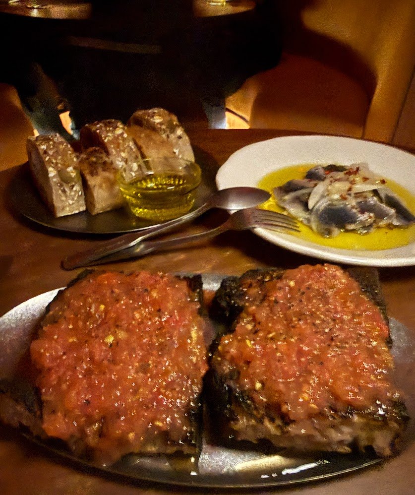 Take the croquetas. Crisp shells shatter to reveal a deliriously oozy centre of manchego and mushroom. They’re molten, savoury and dangerously snackable. Bread from Bread Bar arrives then pickled South Australian sardines which are salty, punchy, oceanic.