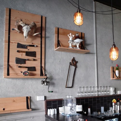 Cleavers and sheep skulls hang from the exposed concrete walls but the vibe is more bounty hunter than butcher, courtesy of Matt Rawlings from Figure Grounds.
