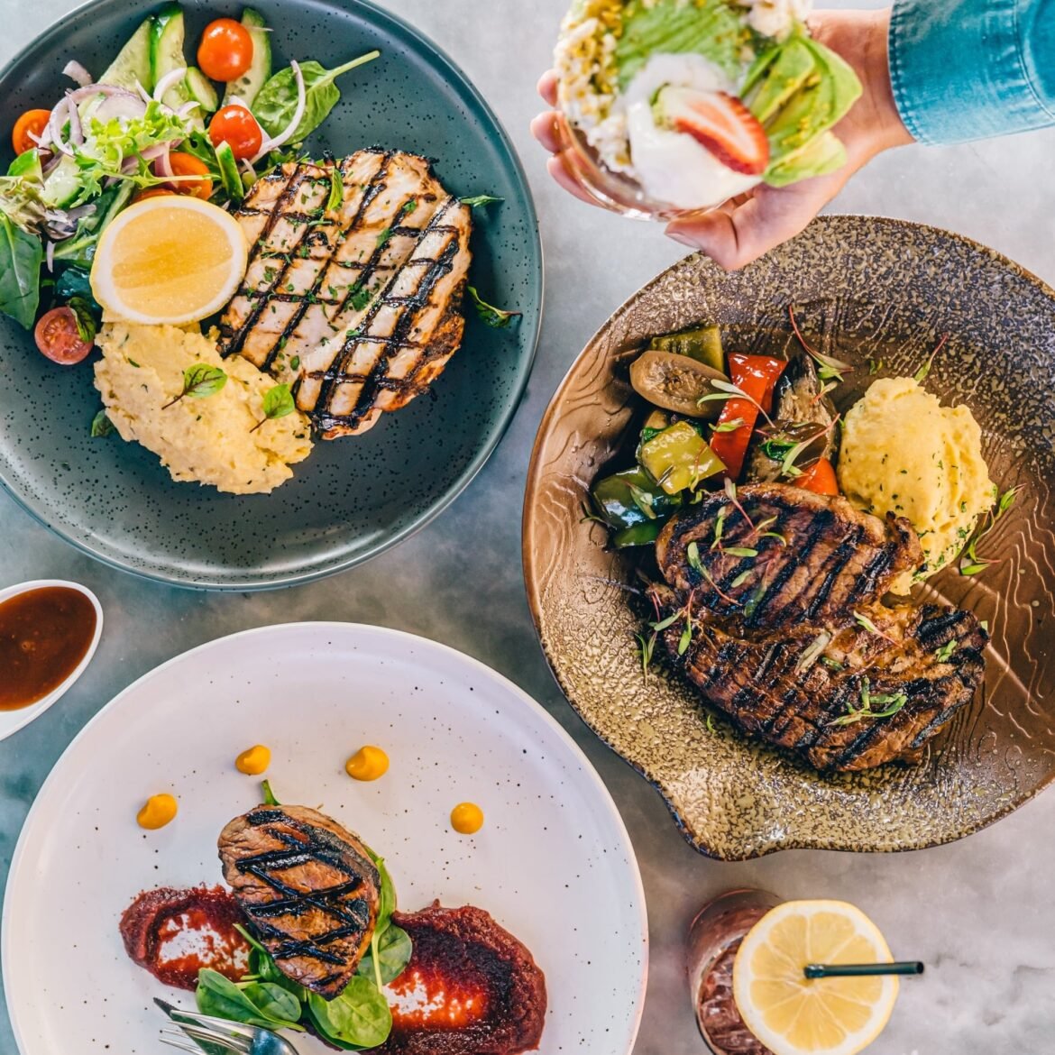 While sipping champers golden plates of petite bites arrive. Executive chef Hamish Neale has curated a mod-med mix, euro inspired. The savoury bites feature Spanish Jamons and Italian Prosciutto. The 5 Jamon donut oozes warm Saint Andre cheese will have you wanting another.