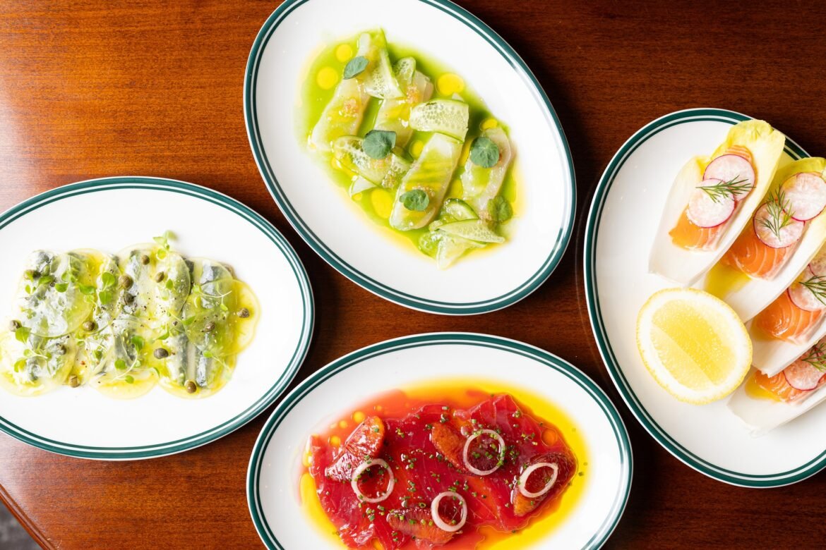 The Setting and Design – The honey gold painted restored 1912 heritage-listed building has so much charm. Cream walls are decorated with historic art, vintage framed photographs and a grandmother clock commands attention by the copper light illuminated kitchen. To our right a brick clad bar has a few seats, begging for a glass of prosecco, conversation and antipasti. The 75-seat restaurant is divided by a square arch, leading into a pretty covered courtyard which will be a dedicated crudo bar and I can already imagine the draw card of summer brunches.