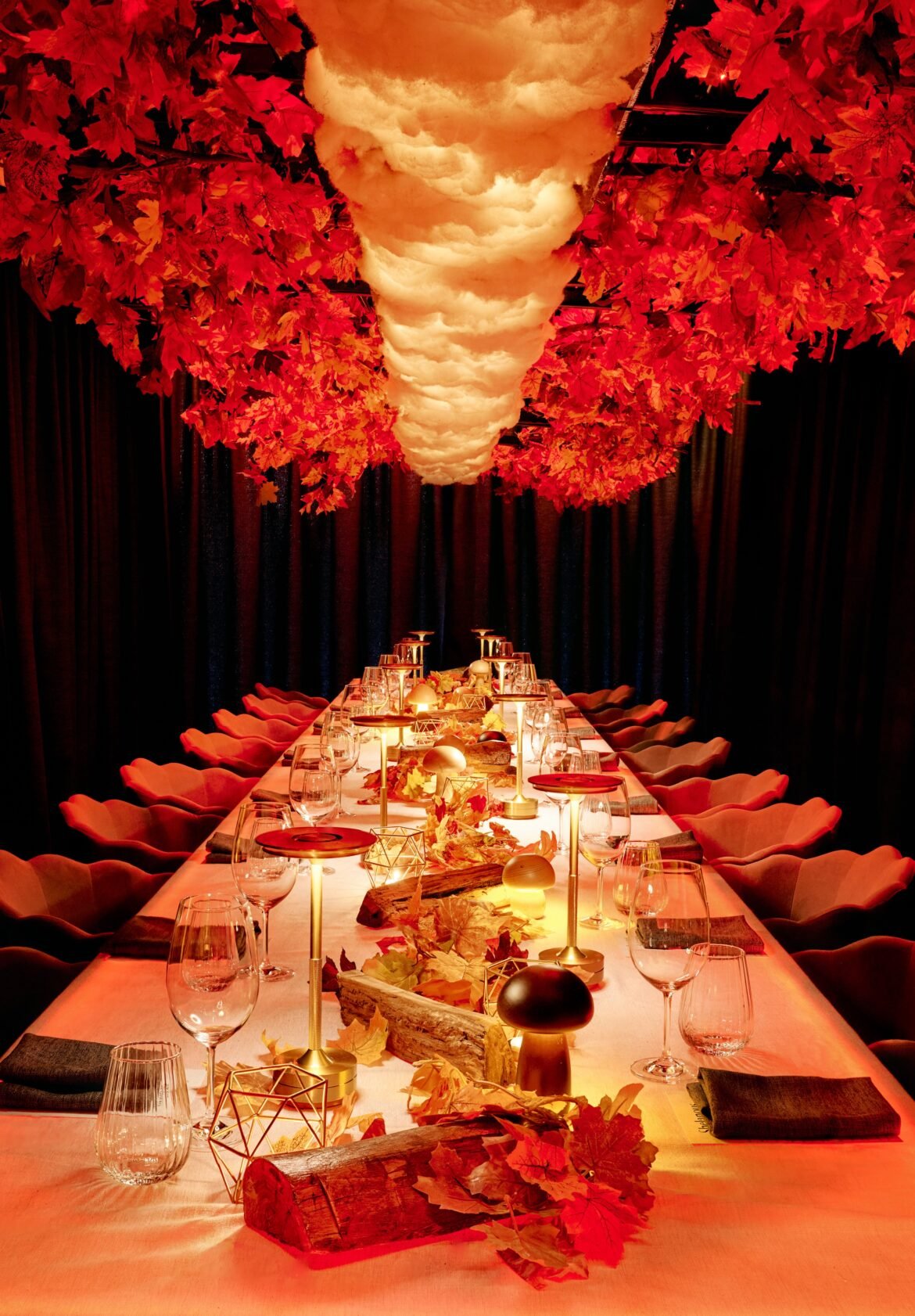 Then we enter the main dining hall. Its old-school charm meets modern day quirk. A grand band piano, a glistening chandelier and sweet kitsch touches. Staff wearing cute santa hats deliver a rainbow of fresh seafood, and most notably, the highlight- a parade of sea urchin – the edible part known as ‘uni’..Masses of smoky nitrogen erupt in front of our eyes, as courses of uni continue to arrive. Fried rice uni, with ui soy sauce, DIY roll your own sushi with uni, edible pearls and sea urchin mist.