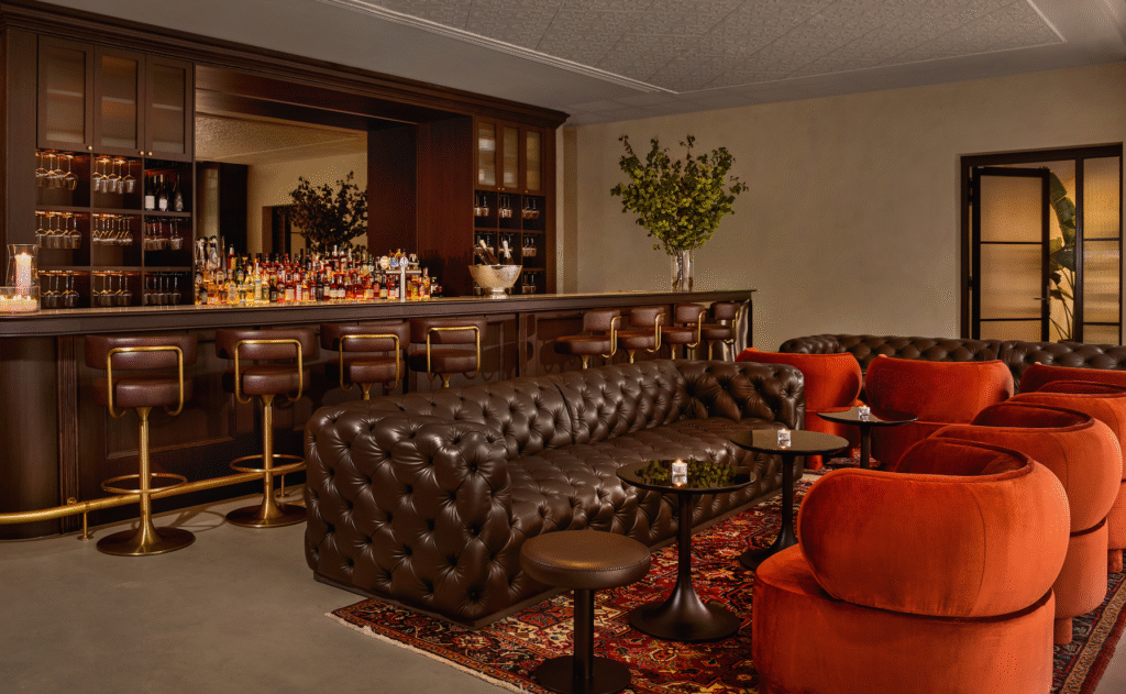 Returning to the ground level overlooking the hotel’s atrium is the Mulwray, named after Faye Dunaway’s character in the movie Chinatown. A terrace wraps around the tropical garden while dark chesterfield lounges circle the bar. We sip on a couple of crisp NV Louis Pommery glasses of champagne and people watch.