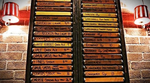 Split over two levels, there’s plenty of space to rest the weary legs including a big ol’ leather booth running the length of the room and scattered tables and chairs. Choose a posse and peruse the booze menu off old wooden train station timetables while you glance over old photos and maps for a good measure of nostalgia.