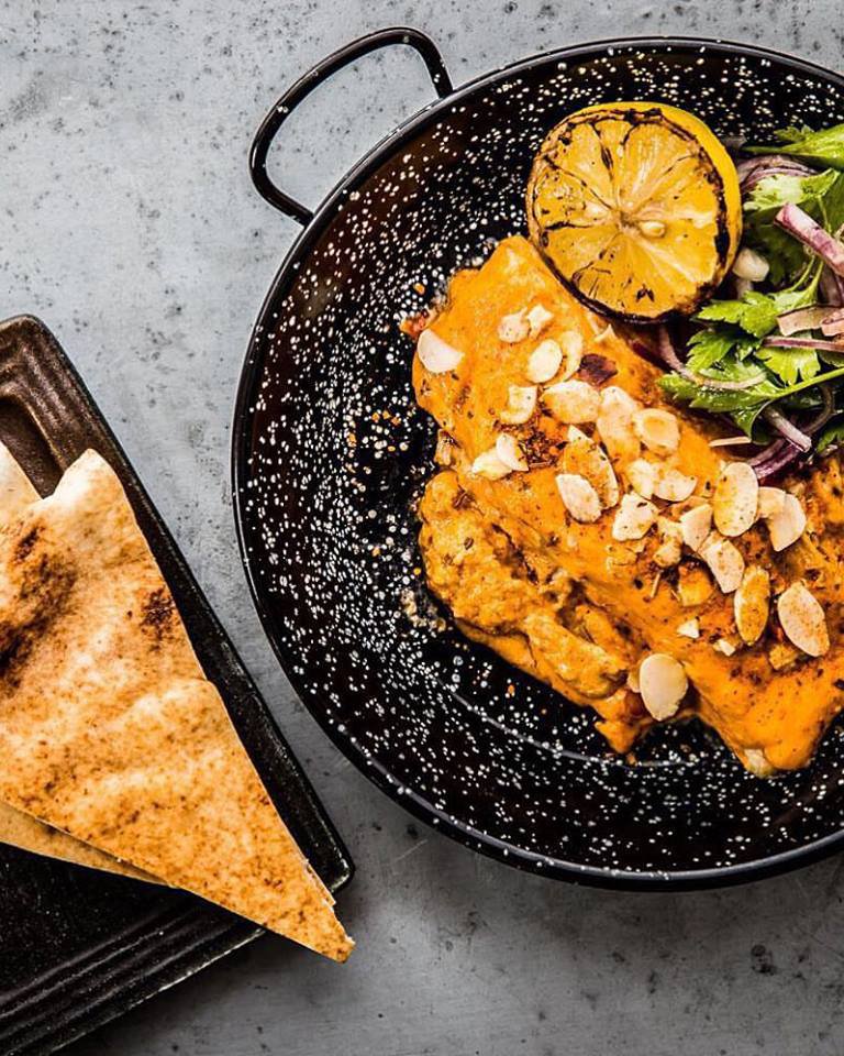 We’ve all had a hundred Baba ganoush and hummus in our life, but topped with sweet miso or edamame? Why did no one think of this? Luscious creamy scoopable goodness is accompanied by a basket of flatbreads. Cauliflower is the new LBD with its perfectly scorched florets topped with tarator and pinenuts.